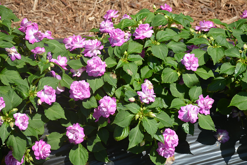 Rockapulco® Wisteria Impatiens is bathed in stunning double lavender round flowers with white overtones at the ends of the stems from mid spring to late summer. Its small pointy leaves remain green in color throughout the season.